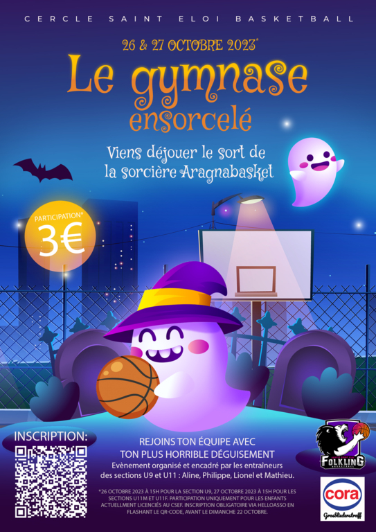 Rejoins ton équipe avec ton plus horrible déguisement et viens sauver notre gymnase en déjouant le sort jeté par la sorcière Aragnabasket.